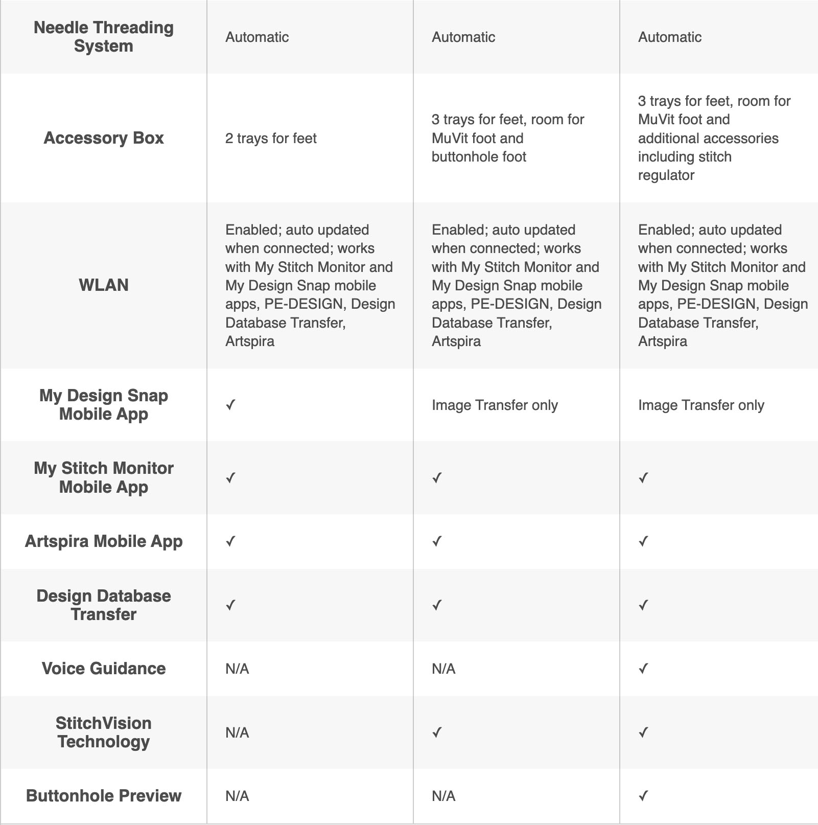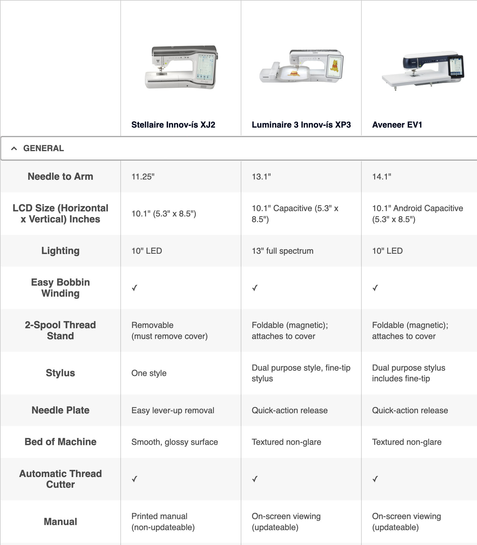 As standard the Aveneer comes with all the superior features like automatic thread cutter, auto feed dog lowering/raising, slide speed control, automatic threading… the list is endless!