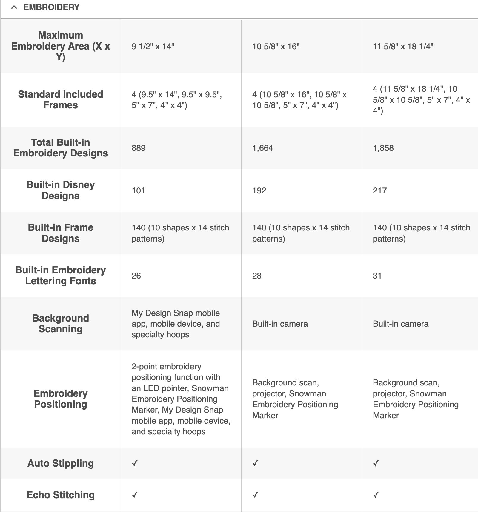 There’s something for every creative taste with over 1,800 embroidery designs including split running designs, Quiltbroidery sashes, Disney motifs, embroidery fonts and much more. There are over 800 utility and decorative stitches, including satin stitches, lettering fonts and Disney stitches. The stitch tapering function gives you the ability to add the finishing touches to jeans, tops, home décor and more.