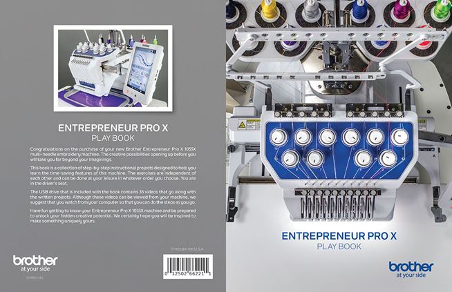 The Entrepreneur Pro X, PR1055X Play Book is your step-by-step guide to the amazing features on the 10-needle embroidery machine! This book has everything you need, from steps on the machine settings and functions to individual projects – all to help you get the very most out of your purchase! There are 34 individual projects with accompanying videos – more than 5 hours of instruction – that can be accomplished at your own pace. The videos are located on the included USB drive and can be viewed from your machine as well as from your computer. Have fun getting to know your Entrepreneur Pro X (PR1055X) machine and be prepared to unlock your hidden creative potential! We certainly hope you will be inspired to make something uniquely yours.
